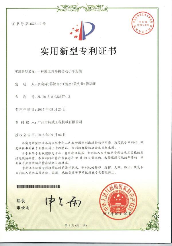 廣州市特威工程機械有限公司地處廣州市白云區神山鎮,廣清高速神山出口附近,是一家施工升降機的專業生產廠家。公司成立于2011年,占地100000多平方米,注冊資金1060萬元,現有員工300余人其中工程技術人員33人,高級技術人員52人。